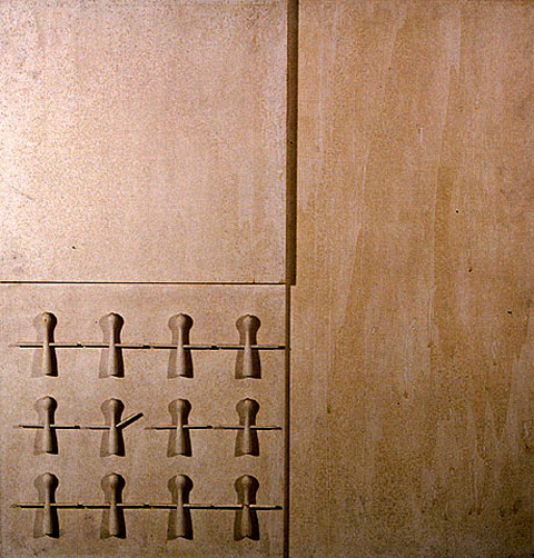 Dieci angoli n.21/68, legnodipinto, 58×45, sul retro: Caraian 1968