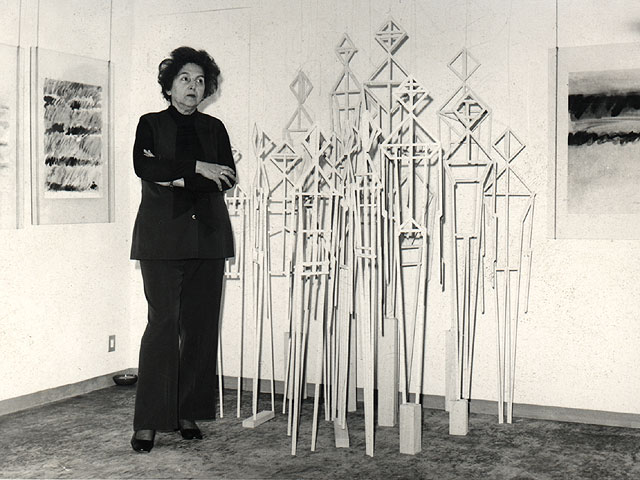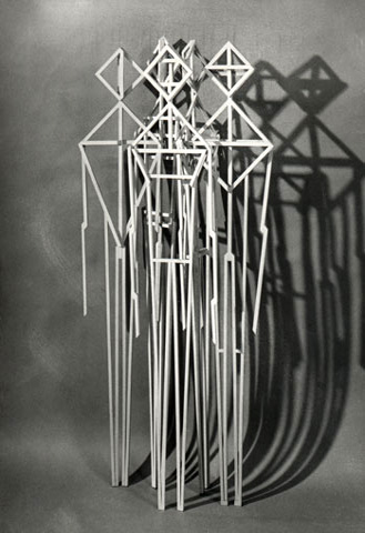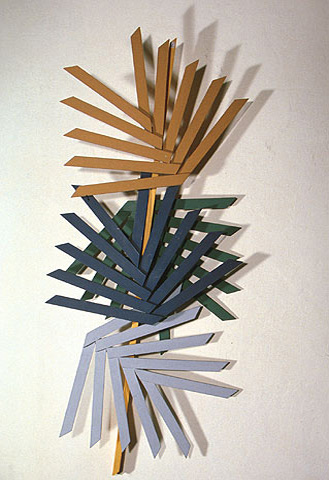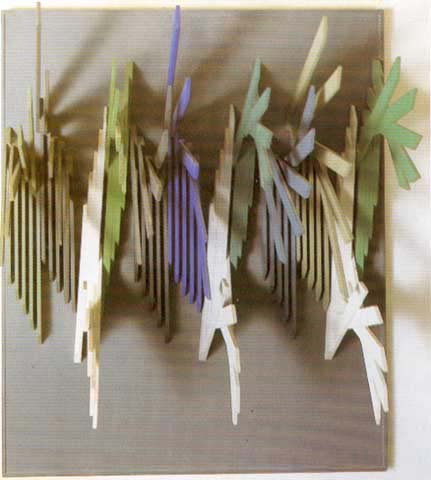 Uomini geometrici, legno dipinto, 1972, 135,5×26