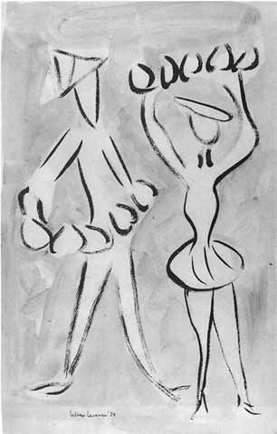 Giocoliere e ballerina, acquarello, 48×31, firmato e