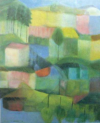 Tramonto, olio su tela, 70×55, firmato e datato: L. Caraian 58, n. inv. 88